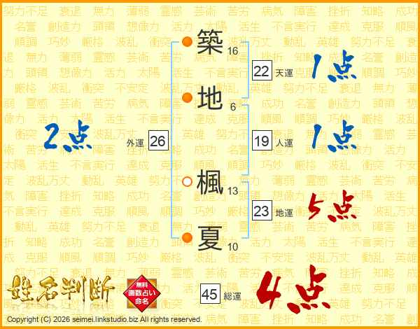 築地楓夏さんの総運は45画の4点!
