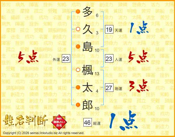 多久島楓太郎さんの総運は46画の1点!