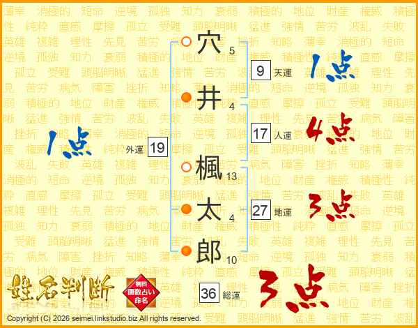 穴(5画)井(4画) 楓(13画)太(4画)郎(10画)