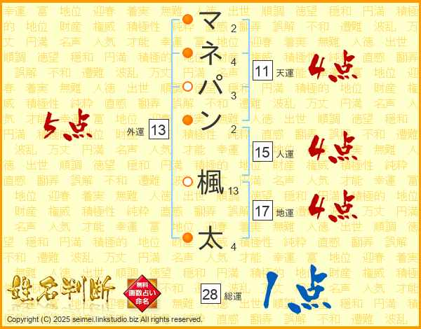 マネパン楓太さんの総運は28画の1点!