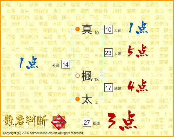 真楓太さんの総運は27画の3点!