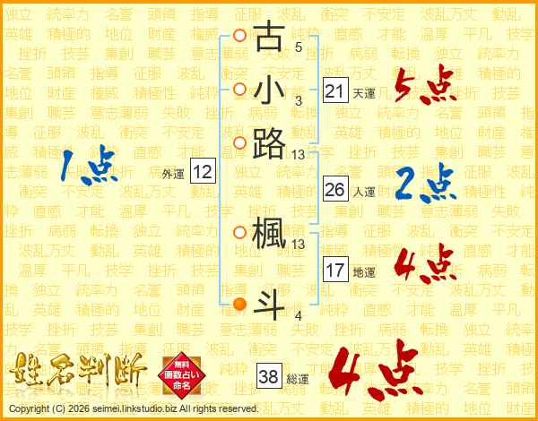 古小路楓斗さんの総運は38画の4点!