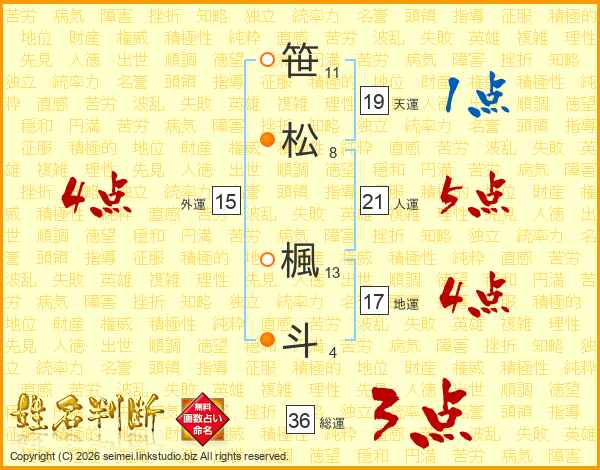 笹(11画)松(8画) 楓(13画)斗(4画)