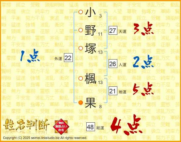 小野塚楓果さんの天運は27画の3点!