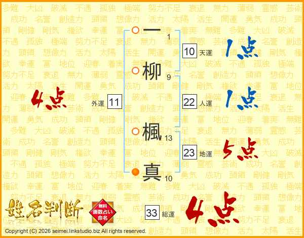 一柳楓真さんの総運は33画の4点!