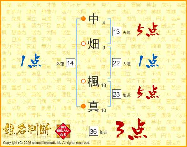 中畑楓真さんの天運は13画の5点!
