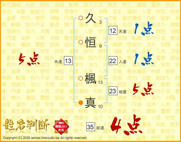 久恒楓真さんの総運は35画の4点!