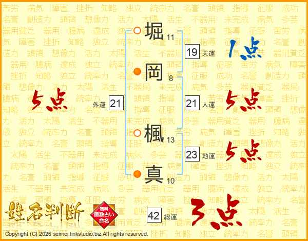 堀岡楓真さんの外運は21画の5点!