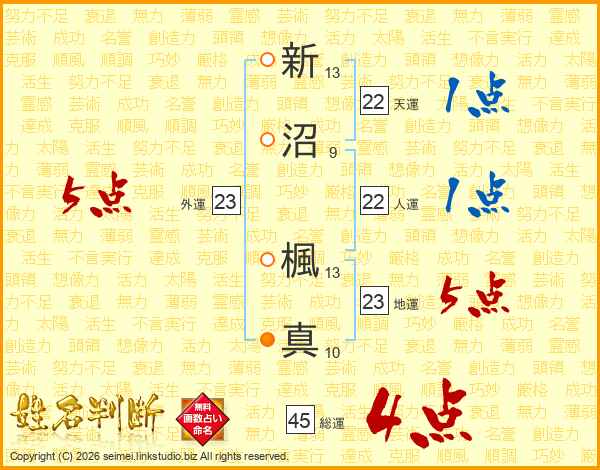 新沼楓真さんの総運は45画の4点!