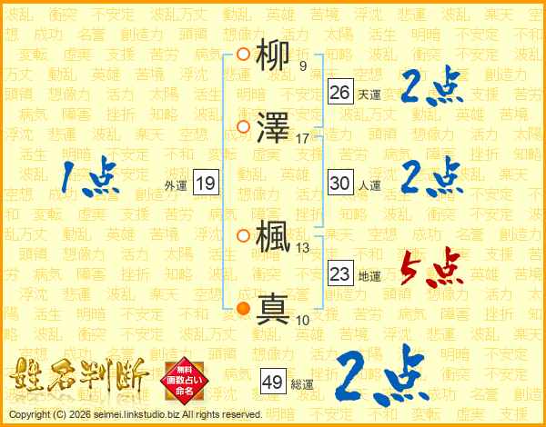 柳澤楓真さんの総運は49画の2点!