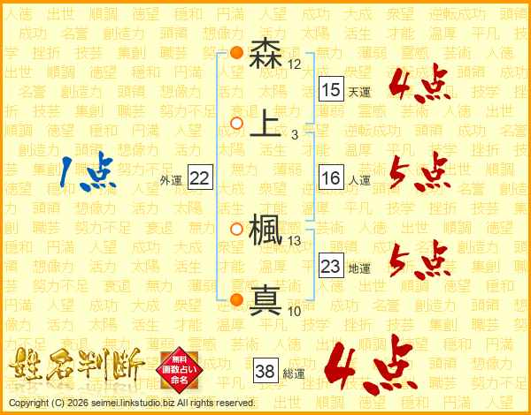 森上楓真さんの総運は38画の4点!