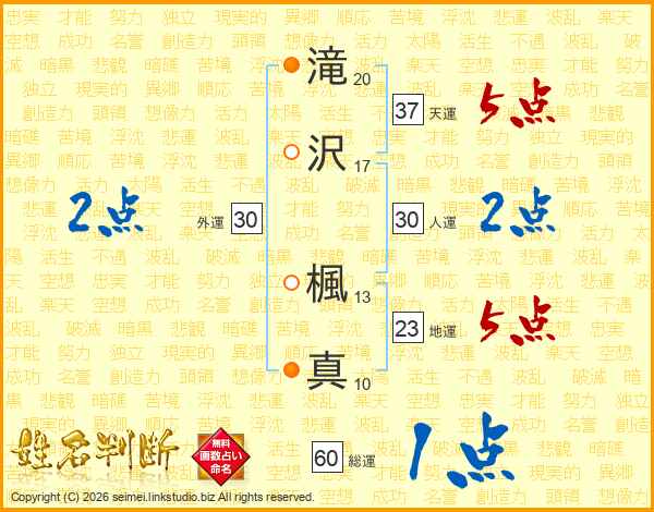 滝沢楓真さんの総運は60画の1点!