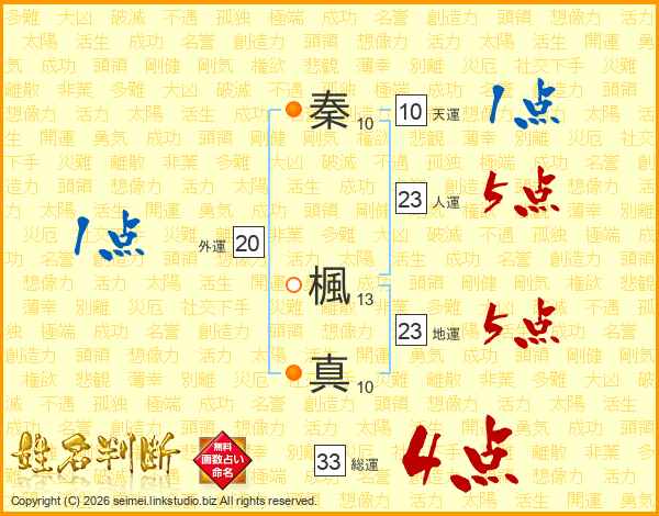 秦楓真さんの総運は33画の4点!