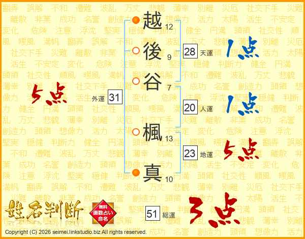 越後谷楓真さんの外運は31画の5点!