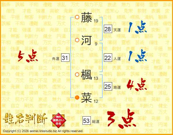 藤河楓菜さんの総運は53画の3点!