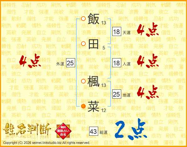 飯田楓菜さんの総運は43画の2点!