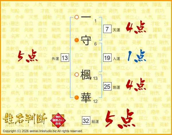一守楓華さんの総運は32画の5点!