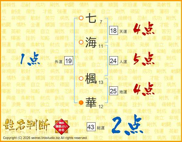 七(7画)海(11画) 楓(13画)華(12画)