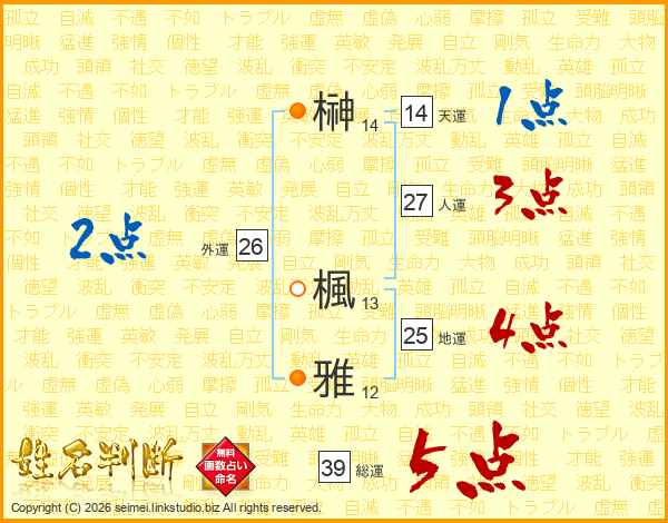 榊楓雅さんの総運は39画の5点!