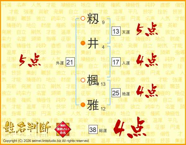 籾(9画)井(4画) 楓(13画)雅(12画)