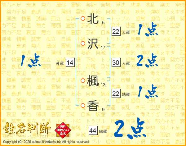 北沢楓香さんの天運は22画の1点!