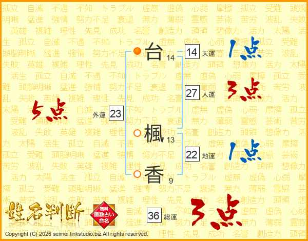 台楓香さんの総運は36画の3点!