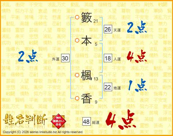 籔本楓香さんの天運は26画の2点!