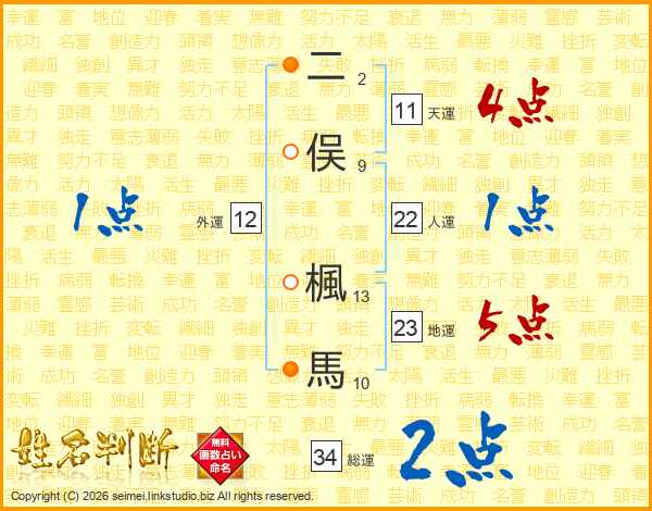 二俣楓馬さんの天運は11画の4点!