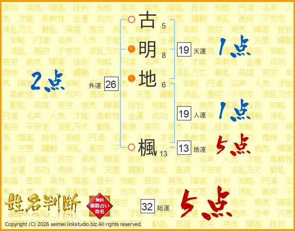 古(5画)明(8画)地(6画) 楓(13画)