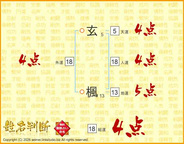 玄楓さんの外運は18画の4点!