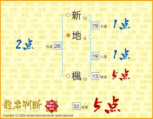 新地楓さんの総運は32画の5点!