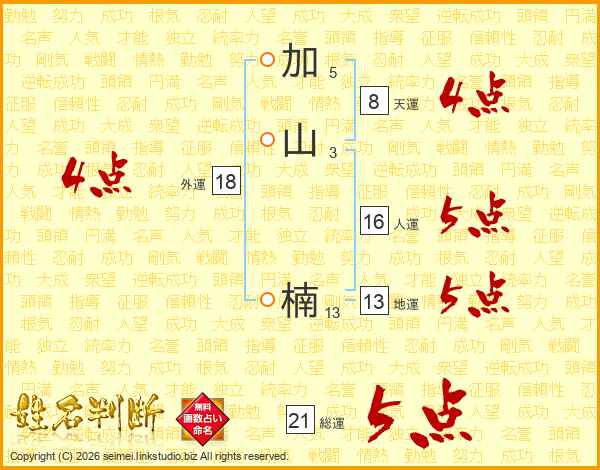 加山楠さんの総運は21画の5点!