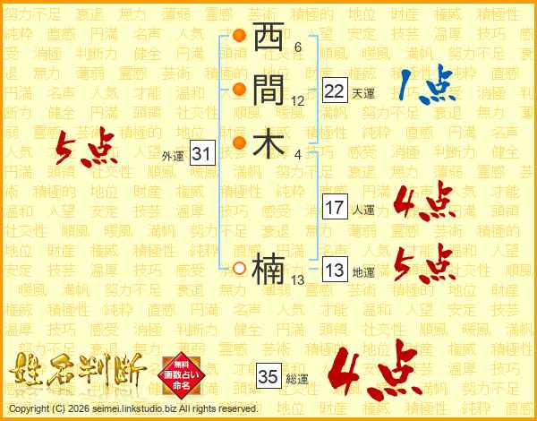 西間木楠さんの総運は35画の4点!