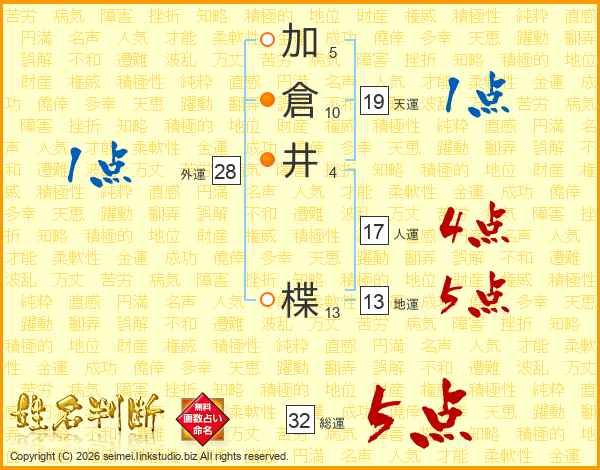 加倉井楪さんの総運は32画の5点!