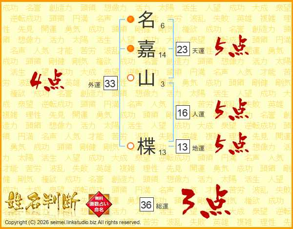 名(6画)嘉(14画)山(3画) 楪(13画)