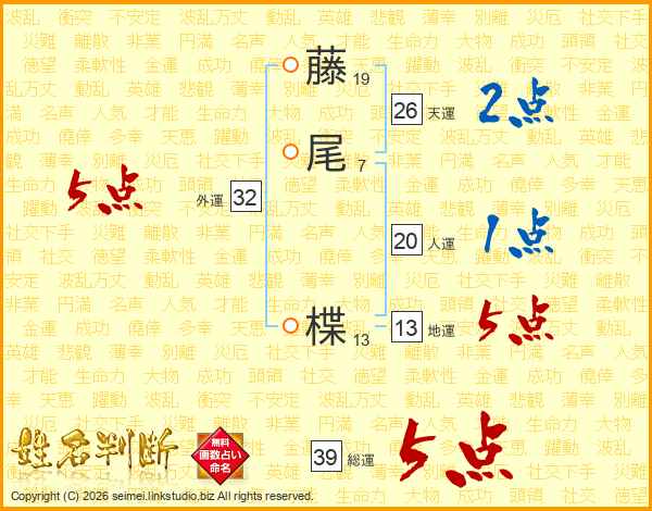 藤尾楪さんの外運は32画の5点!