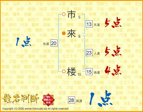 市來楼さんの人運は23画の5点!