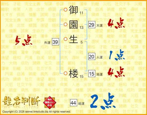 御園生楼さんの外運は39画の5点!