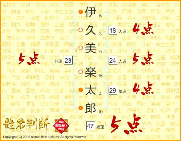 伊久美楽太郎さんの総運は47画の5点!