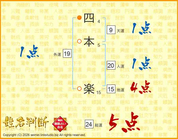 四本楽さんの総運は24画の5点!