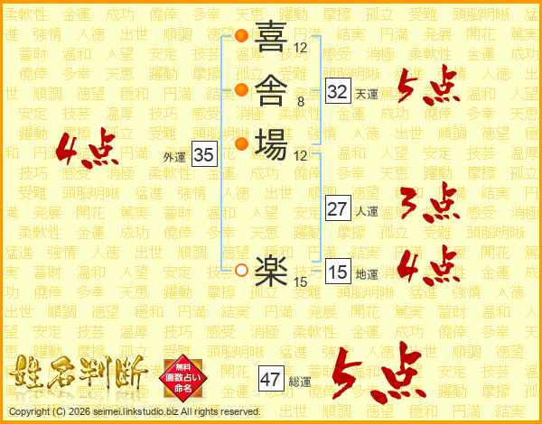 喜舎場楽さんの総運は47画の5点!