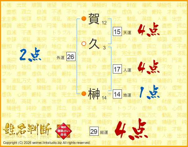 賀久榊さんの総運は29画の4点!