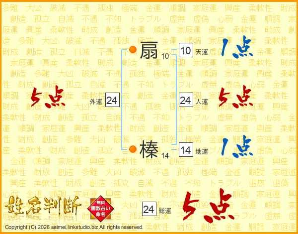 扇榛さんの人運は24画の5点!