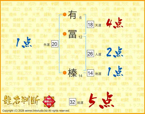 有冨榛さんの総運は32画の5点
