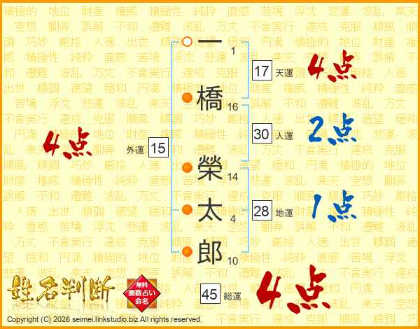 一橋榮太郎さんの総運は45画の4点!
