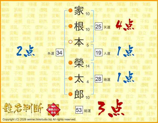 家(10画)根(10画)本(5画) 榮(14画)太(4画)郎(10画)
