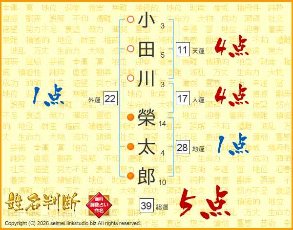 小田川榮太郎さんの総運は39画の5点!