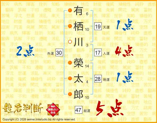 有栖川榮太郎さんの総運は47画の5点!
