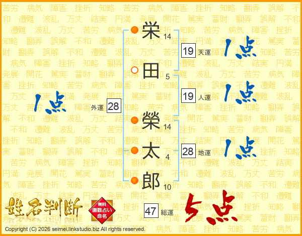 栄田榮太郎さんの総運は47画の5点!