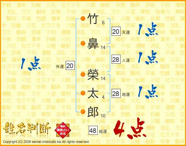 竹鼻榮太郎さんの総運は48画の4点!